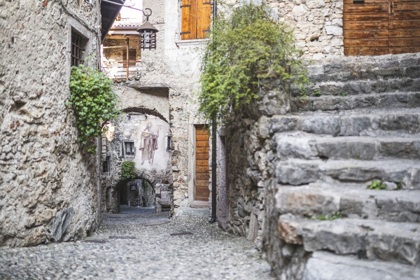 Der Startpunkt liegt in Arco. Von hier geht es hinauf durch die terrassierten Olivenhaine, begleitet von weiten Ausblicken über das Tal von Riva del Garda mit dem Monte Brione. Die Landschaft wechselt mit jeder Kurve – vom mediterranen Klima hin zu alpiner Frische.