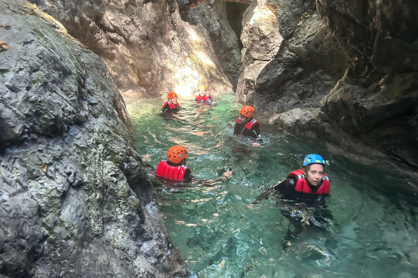 - Diese Tour bietet alles, was Canyoning so einzigartig macht: bis zu 6 Meter hohe Sprünge, natürliche Wasserrutschen und Schwimmstrecken in kristallklaren Pools – perfekt für alle, die eine echte Herausforderung suchen.