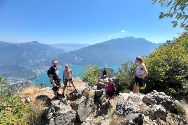 Der Klettersteig endet auf der Cima Rocca (1.090 m), einem spektakulären Aussichtspunkt mit Blick auf den ganzen Gardasee, den Monte Baldo und die Gipfel des Ledrotals. Ein Erlebnis für alle, die Abenteuer mit Natur und Geschichte verbinden wollen.