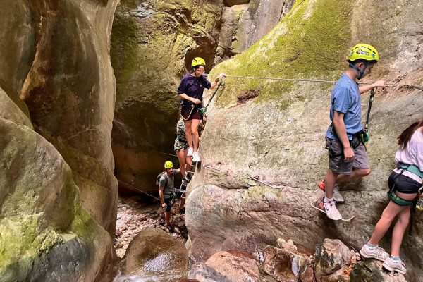 Das Gebiet ist ein schönes Fleckchen Erde und bietet einen leichten Klettersteig in 4 m Höhe, der je nach Andrang ca. 15-30 Minuten quer durch die Klamm führt, danach folgt eine Flussüberquerung von ca. 15 m auf einem Drahtseil in 10 m Höhe und noch ein kleiner Felsen von 20 m Höhe. Insgesamt dauert die Tour 1-2 Stunden und ist sehr gut zum Einstieg für Anfänger geeignet.