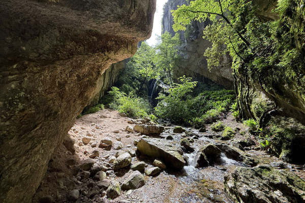 - Die Route führt mitten durch eine enge Felsklamm, in der Wasserfälle und faszinierende Lichtspiele eine besondere Atmosphäre schaffen.