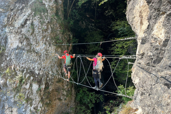 - Moderner Klettersteig in spektakulärer Naturschlucht Metallleitern, ausgesetzte Querungen und Hängebrücken Einzigartige Atmosphäre mit Wasserfällen und dem Rauschen des Rio Fai Kurzer Zustieg und bequemer Rückweg Für alle, die Adrenalin und Natur suchen.
