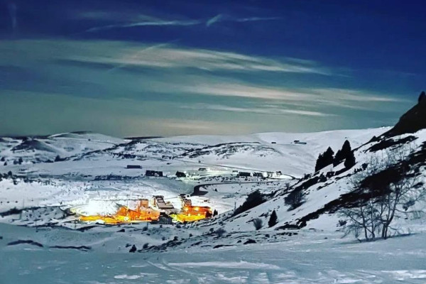 Wenn die Nacht über die verschneiten Berge hereinbricht, passiert etwas Besonderes: Die Stille wird tiefer, die Umrisse von Almhütten und Weiden weicher, der Schnee leuchtet im Mondlicht, fast wie in einem Märchen.