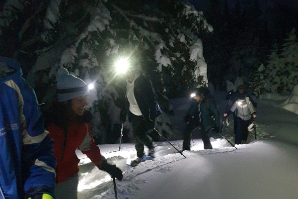 A magical and evocative night-time excursion, lit only by the snow and the glow of the full moon.
