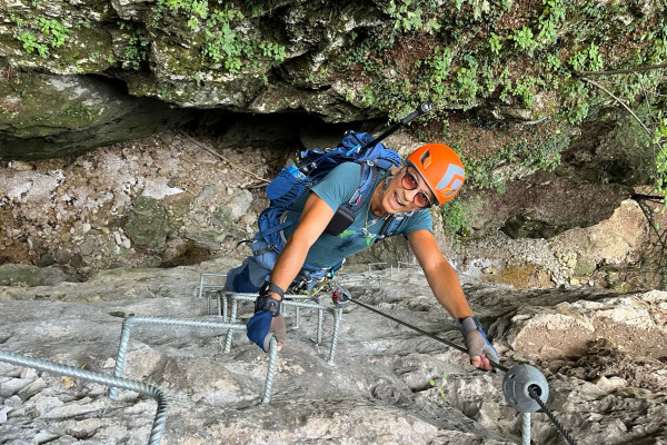 After a short and easy approach, the ferrata immediately enters its most spectacular section: metalladders, exposed traverses and suspension bridges guide you step by step through a wild anddramatic environment. The constant sound of rushing water enhances the atmosphere, making thisvia ferrata truly unique compared to other routes in the region.