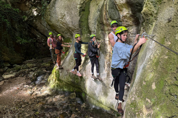 - Un tracciato avvincente e panoramico – La ferrata si sviluppa lungo le pareti della gola, offrendo una progressione emozionante con scalette di ferro, passaggi sospesi e tratti leggermente esposti.